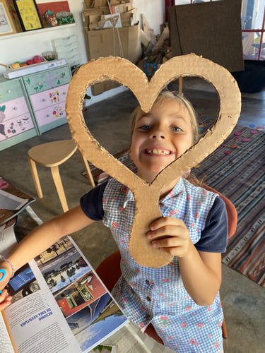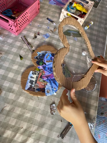 Começámos o nosso ano letivo a refletir naquilo que sonhamos para o nosso futuro. E, porque de vez em quando até somos literais, decidimos construir um espelho em cartão onde colámos a nossa composição com recurso a colagem, para criarmos um reflexo daquilo que vemos no nosso futuro com o que valorizamos no nosso presente.