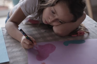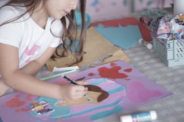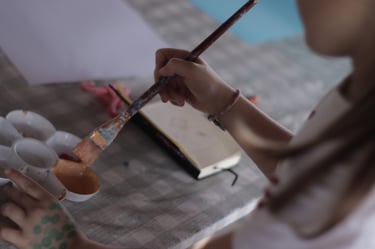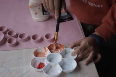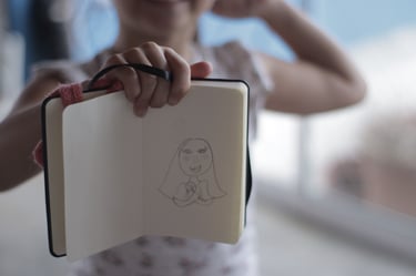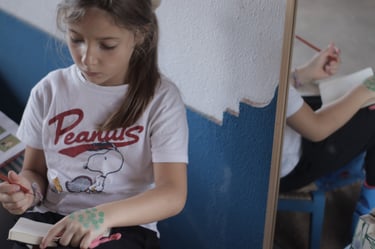 Começámos por ler a história de vida de Malala e admirámo-nos com a sua coragem e tenacidade a enfrentar as injustiças. Impelidos pela sua história, logo agarrámos nas nossas “armas” de artista, um lápis e o diário gráfico, para fazermos estudos do nosso auto-retrato inspirados nas ilustrações do livro acabado de ler. Assim que os esboços ficaram feitos, passámos para a mistura de cor para fazer o tom de pele pretendido. Os nossos alunos já estão uns craques a criar exactamente as cores que querem usando apenas os tons primários. Feita a cor, cobrimos uma folha A3 para depois a pormos a secar. Aproveitando a espera, os nossos alunos decidiram decorar as molduras de cartolina mantendo-se fiéis à sua voz, usando motivos com base no objecto e tema escolhidos como símbolos do sonho de cada um. Também as ovais, que iriam servir de fundo para o retrato, foram pintadas, desta feita com listras.