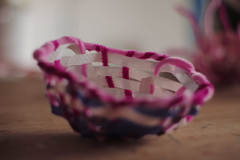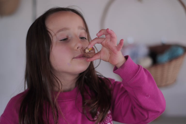 Chegou a Páscoa e com ela mais uma oficina da Inato. Divertimo-nos à grande a assumir o papel do coelho da Páscoa que cada um recriou à sua maneira. Para criarmos essa personagem tivemos que definir a sua personalidade, através de uma qualidade e de um defeito, e atribuir-lhe a cor que melhor o representaria. Começámos o dia da melhor forma, com um aroma doce de chocolate pelo ar do nosso atelier. É que se queríamos ter ovinhos de chocolate para a caça aos ovos teríamos que ser nós a fazê-los! Derretemos o chocolate em banho-maria e pusémo-lo em formas onde já tínhamos colocado smarties em pedaços. Depois, foi só esperar que o chocolate endurecesse e controlar o nosso apetite para não atacar aquela delícia! Enquanto esperávamos, dedicámo-nos a outro ofício, o da cestaria. O nosso coelhinho precisava de um cesto onde transportar os ovinhos de chocolate e foi isso mesmo que fizemos. Usámos, como base do cesto, arames coloridos onde entrançámos tiras de sacos de ráfia polipropileno, tudo com a cor do nosso coelhinho. Concluído o cesto, passámos à pintura dos papelinhos que iríamos usar para embrulhar os nossos ovos, usando unicamente a cor do nosso coelho. Quem diria que com uma cor apenas conseguiríamos tanta variedade de padrões. E todos tão giros! Por último, fizemos o retrato do nosso coelhinho que serviu de estandarte para o nosso pequeno cesto.