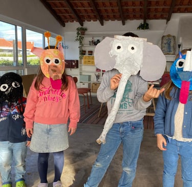Surpresa das surpresas, acabámos por descobrir que os animais das máscaras que nos tinham calhado eram personagem da história "O Cuquedo"! Acabámos o dia em grande com um teatro baseado nessa história maravilhosa.