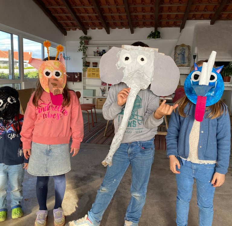 Passámos um dia muito divertido a criar máscaras de Carnaval! O dia começou com cada um a escolher uma gaveta que continha uma caixa mistério com materiais reciclados e uma pista de qual seria a máscara a concretizar. Acabámos por descobrir que o tema era animais da selva, tendo calhado um diferente a cada um dos participantes. Com os materiais previstos para cada máscara já em nossa posse, pusemos mãos à obra. O resultado foi fantástico e até deu lugar a algumas surpresas!