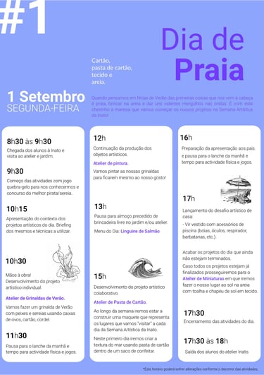 A segunda semana artística de Verão Inato foi tão boa! Já tínhamos saudades de passar uma semana com as nossas artistas e com elas desenvolver os nossos projectos artísticos. O horário e os projectos foram aprimorados, aproveitando todas as aprendizagens alcançadas na primeira semana, e deu muito espaço para liberdade criativa e muita brincadeira. Esta Semana Artística de Verão Inato teve como tema: as Férias de Verão. Cada dia foi dedicado à exploração dos lugares passíveis de fazermos férias: a praia, a piscina, a floresta, a cidade e Marte (a imaginação é o nosso limite)! Todos os dias começávamos com um concurso de máscaras relacionadas com o tema do dia. Quem ganhava o concurso recebia uma condecoração e ficava com o papel dessa personagem para representar no teatro do final da semana.
