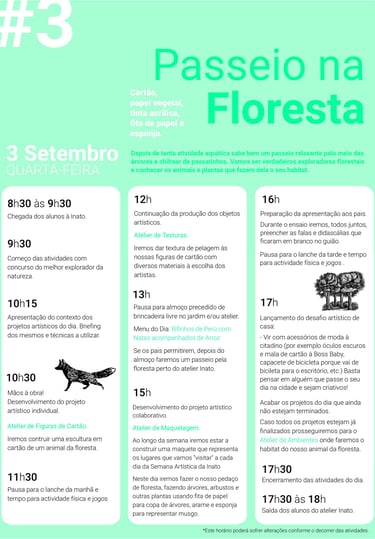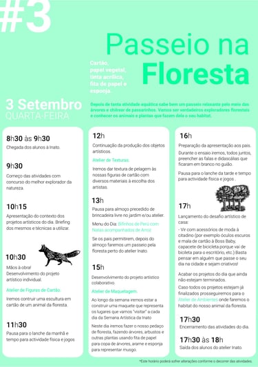 Este foi o dia de explorar a floresta, as suas plantas, árvores e animais. Fomos até ao mais profundo da nossa ligação com a natureza para trazer a nossa visão da mesma. Foi um dia muito bem passado que deu para respirar o ar puro da nossa imaginação.