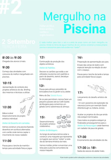 O título deste segundo dia foi “Mergulho na Piscina” e tivemos a sorte de um sol radioso que complementou o programa preparado para hoje.